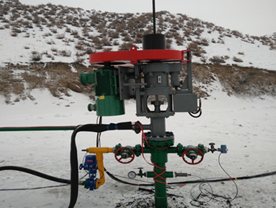 螺桿泵采油系統(tǒng)主要分為井下部分和地面部分組成,而地面部分也就是我們常說的螺桿泵地面驅(qū)動(dòng)裝置,它的作用是為井下部分的螺桿泵提供動(dòng)力來源,驅(qū)動(dòng)抽油桿柱、帶動(dòng)井下螺桿泵運(yùn)轉(zhuǎn)實(shí)現(xiàn)液體的舉升。我公司生產(chǎn)研發(fā)的液壓剎車螺桿泵地面驅(qū)動(dòng)裝置由于其結(jié)構(gòu)簡單、噪音低、成本低、反轉(zhuǎn)自動(dòng)剎車、使用維護(hù)方便而受到廣大用戶歡迎。